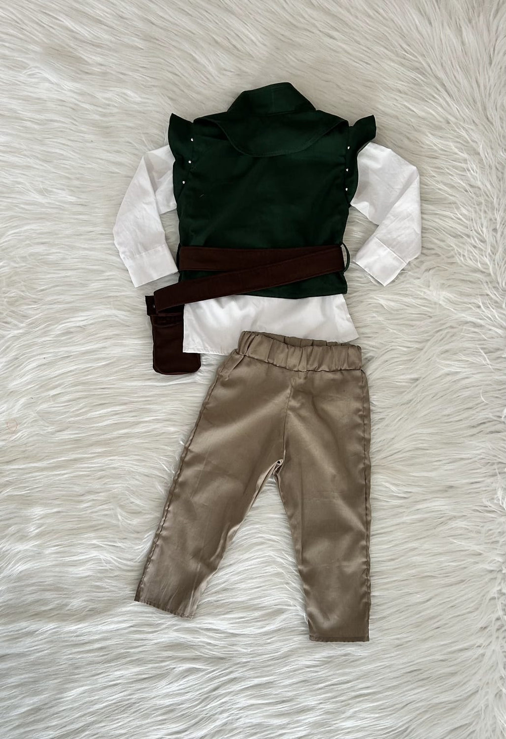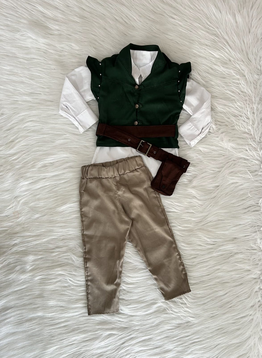 🎨 Detalhes: Conjunto completo que acompanha 1 camisa de manga longa, 1 colete, 1 cinto e 1 calça. Aplicações em patches termocolantes (não bordados), garantindo praticidade e ótimo acabamento