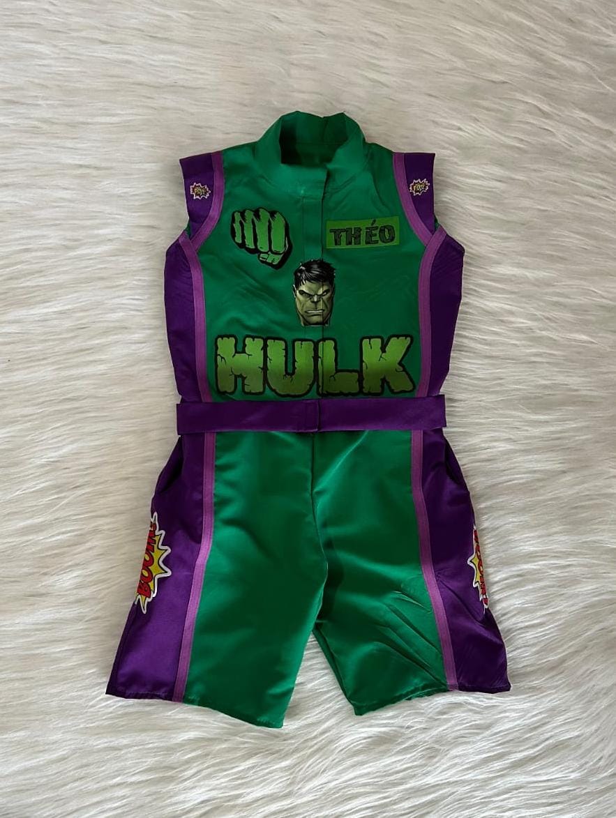 Macacão Hulk com Detalhe Roxo na Lateral Infantil 💚💜