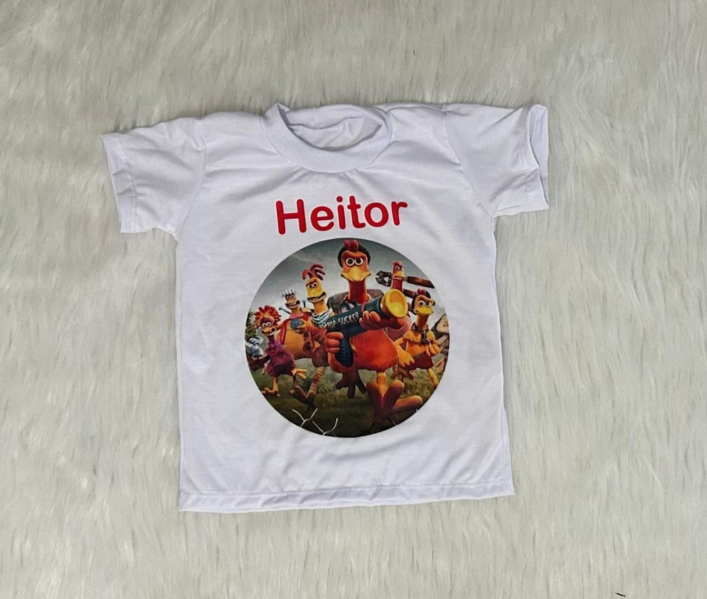 Camiseta Personalizada Fuga das Galinhas Infantil 🐔🎬